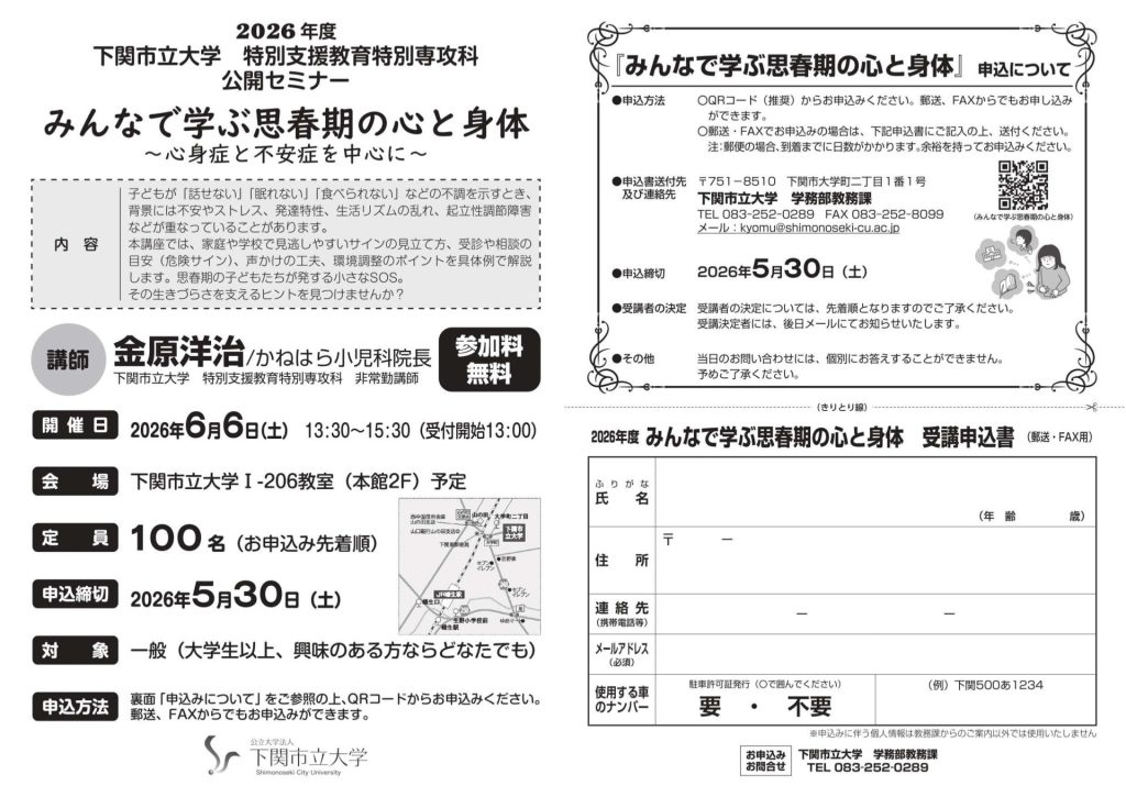 ホーム EVENT 下関市立大学 EVENT ランシット大学(タイ)による表敬訪問 2026.04.09 【公開セミナーのご案内】下関市立大学特別支援教育特別専攻科 2026.04.08 留学体験発表会を開催します! 2026.04.01 【受講生募集】附属リカレント教育センター2026年度 下関市立大学 市民大学公開講座(春学期) 2026.04.01 2026年度第Ⅱ期派遣学生の募集を開始します! 2026.03.31 2025年度下関市立大学卒業式・学位記授与式を挙行しました 2026.03.31 【受講生募集】2026年度スキルアップコースを募集します。 2026.03.27 【受講生募集】2026年度DXのためのスキルアップコースを募集します。 2026.03.02 デジコンしものせき市長表敬訪問について 2026.02.24 2025年度 第2回リーダーシップトレーニング(普通救命講習)・防災訓練に参加しました 2026.02.13 2026年度第Ⅰ期派遣学生の第2次追加募集を開始します! 2026.02.12 【受講生募集】2026年度 履修証明プログラム、スキルアップコースを募集します。 2026.01.30 下関地域商社事業「沖縄大交易会」PBL報告会を開催しました 2026.01.26 2026年度第Ⅰ期派遣学生の追加募集を開始します! 2025.12.19 『鯨油ランプ・キャンドルナイト』のイベントを開催します! 2025.12.15 12345...1020...»