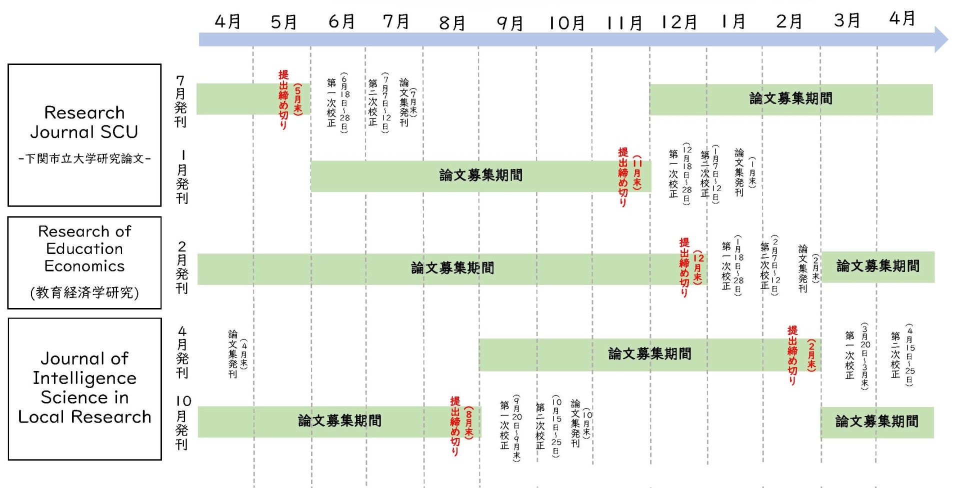 下関市立大学の研究機構では、下関市立大学研究論文(Research Journal SCU:RJSCU)、教育経済学研究 (Research of Education Economics:ROEE)、そしてJournal of Intelligence Science in Local Research (JIS-LR)の3つのJournalを発刊しています。