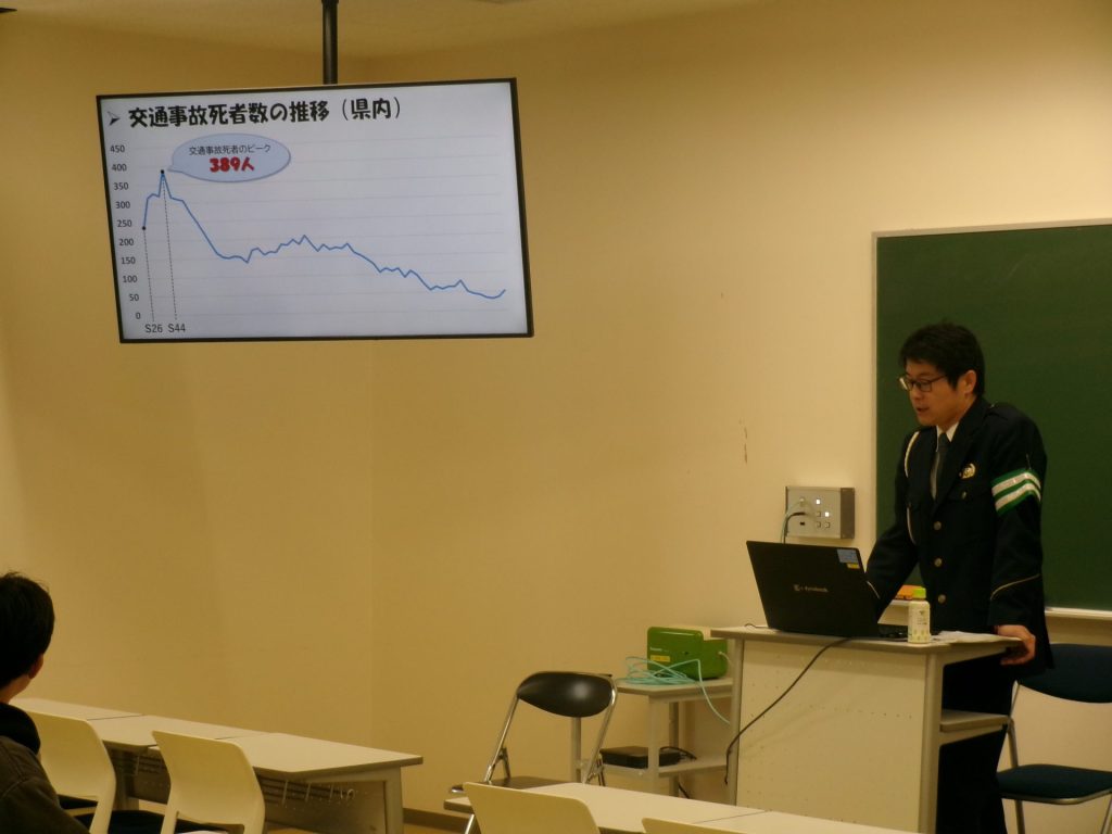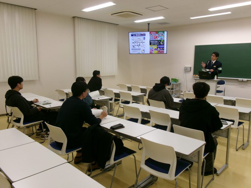 この講習会は、自動車、バイク及び自転車で通学する学生を対象に毎年開催しています。