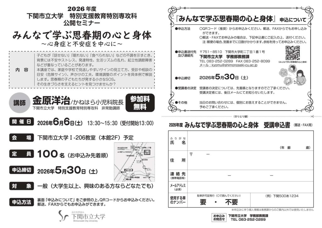 - 【公開セミナーのご案内】下関市立大学特別支援教育特別専攻科
