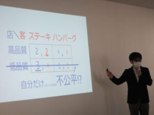 ※ゲーム理論とは・・・人の行動や意思決定を数式に表現し、経済学や社会学、政治学など幅広く応用することができる学問です。