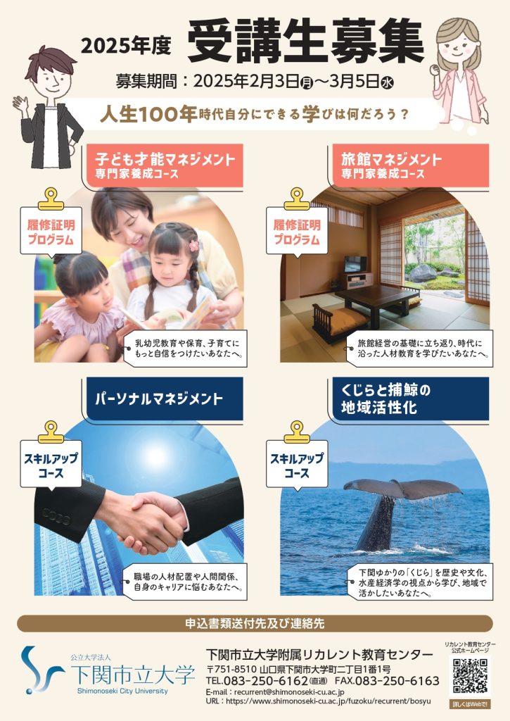 ホーム 下関市立大学について 新着情報一覧 SDGs SDGsへの取り組み SDGsホーム SDGsへの取り組み SDGs活動連絡フォーム 新着情報一覧 【研究成果】本学教員の論文が国際ジャーナルに掲載されました ― 機械学習を用いた消化器外科手術における周術期心血管イベントリスク予測 ― 2025.04.24 看護学部キャンパスツアー開催(5月11日)のお知らせ 2025.04.22 【受講生募集】2025年度履修証明プログラム、スキルアップコースを募集します。 2025.03.31 下関市立大学総合大学移行記念国際シンポジウム「世界の事例から学ぶ観光戦略とまちづくり」開催のご案内 2025.03.13 【募集期間延長】2025年度 旅館マネジメント専門家養成コース、くじらと捕鯨の地域活性化スキルアップコースの募集期間を延長します 2025.03.07 下関市立大学看護学部棟(N棟)竣工式、下関市立大学看護学部開設記念講演・内覧会を開催しました 2025.03.06 下関市立大学看護学部開設記念講演会及び内覧会の開催について 2025.02.21 2024年度第2回リーダーシップトレーニングを開催しました 2025.02.12 キルギス国立農業大学との学術交流協定締結並びに日本学術研究センターの設置について 2025.02.03 【受講生募集】2025年度 履修証明プログラム、スキルアップコースを募集します。 2025.01.28 グローバル キャリアの道2024~学生時代に留学や国際経験をした先輩のこれまでの道のりと後輩へのメッセージ~開催します 2025.01.28 産官学金連携による人口問題に関する共同研究の推進に係る共同記者会見を実施しました 2024.12.27 4 / 6« 先頭«...23456»