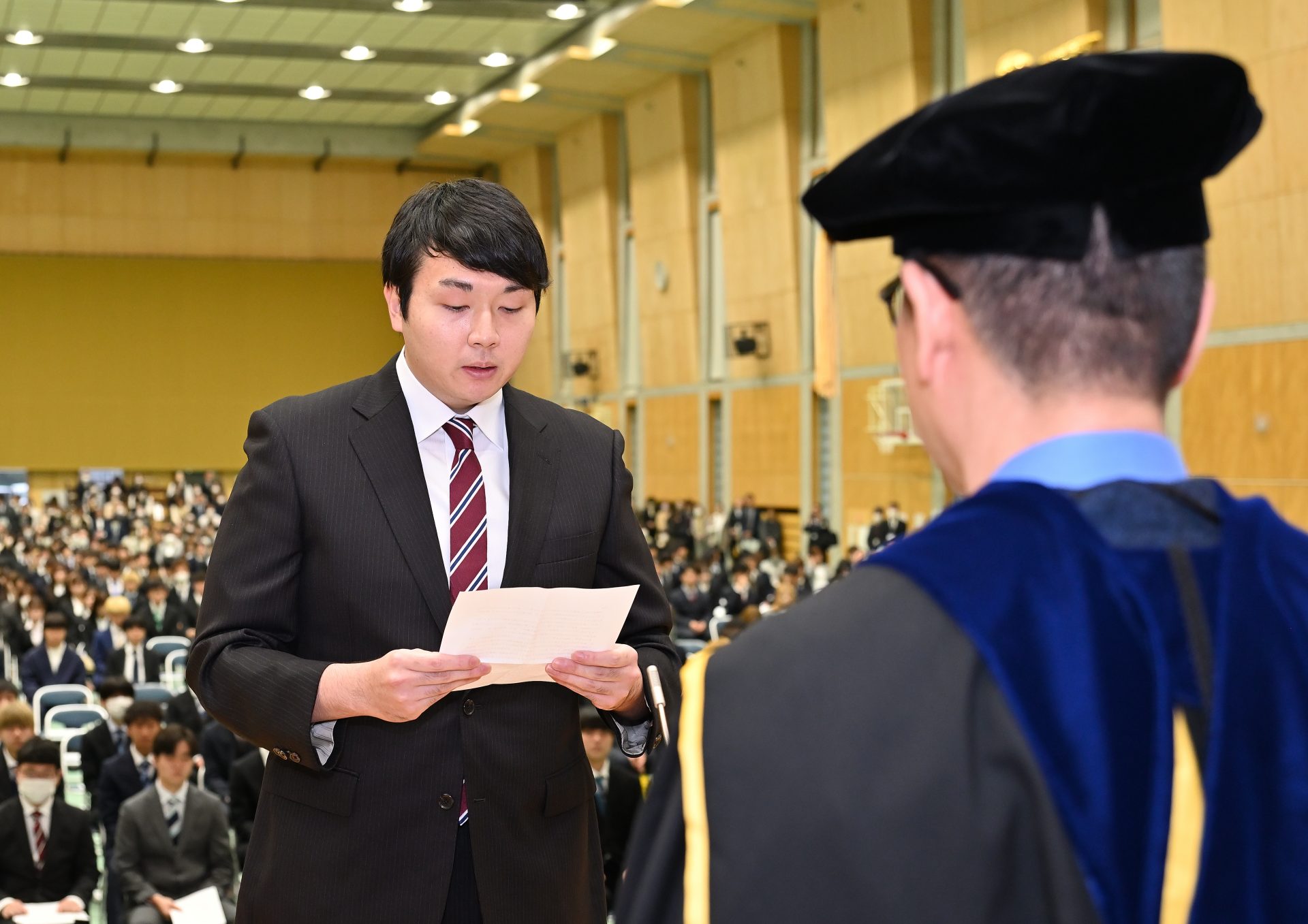 - 新入生代表宣誓 経済学部代表 德田拓海さん