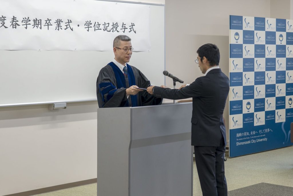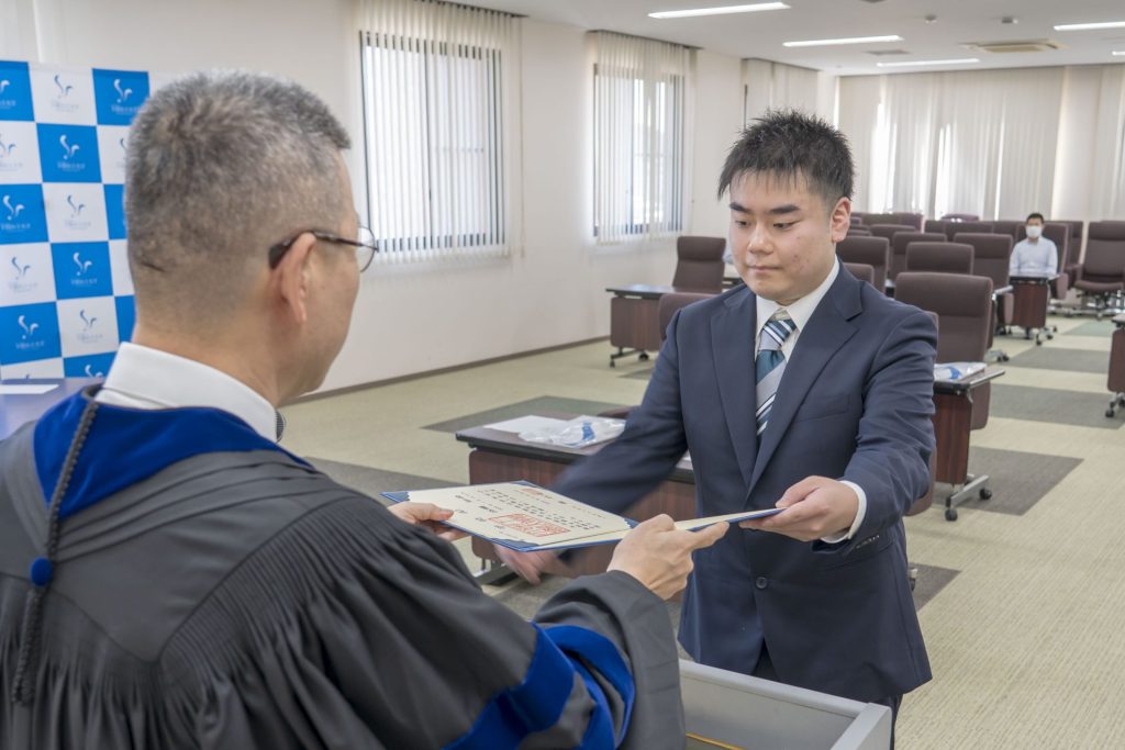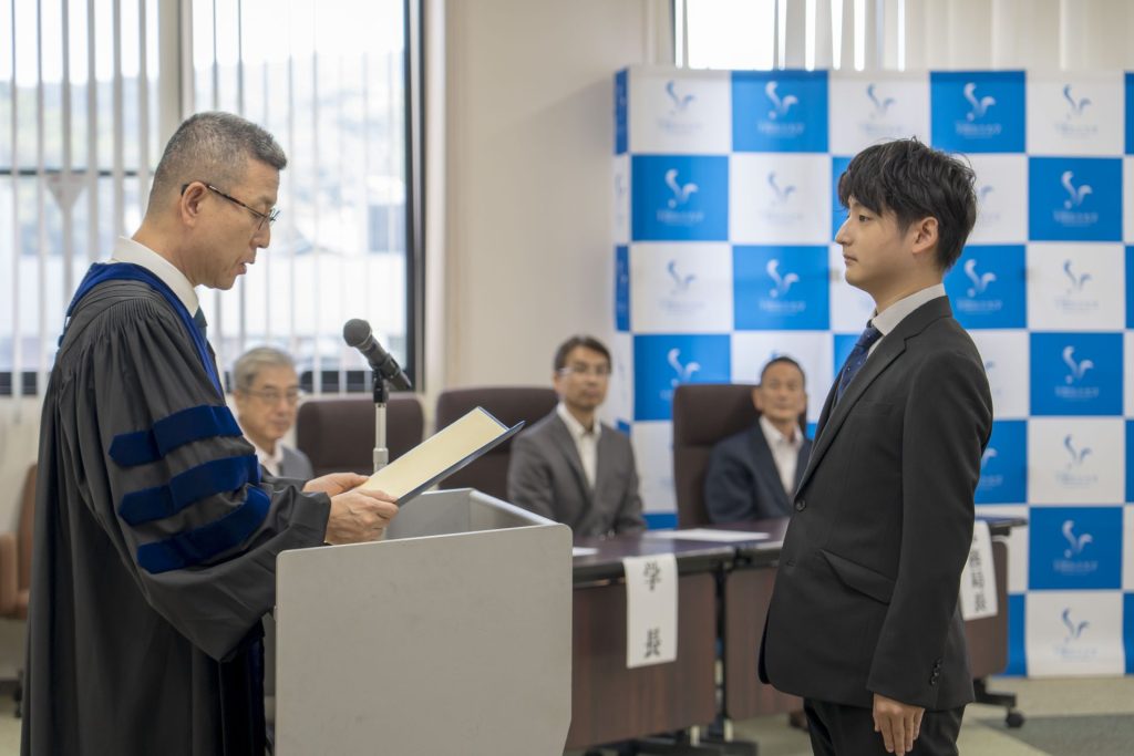 当日は4名の卒業生が出席し、ひとりずつ学長から学位記を受け取りました。