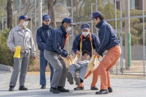 講習終了後には、下関市北消防署員の指導のもと行われる防災訓練に参加しました。